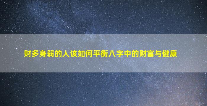 平衡"财"多身弱的核心是:强身、导财、通五行。需结合具体八字分析用神忌神,针。对,性,调,整,若。条件允许建议咨询专业命理师制定个性化方案同时注重现实 💮 中的健康管理和财务规划方能真正趋吉避凶