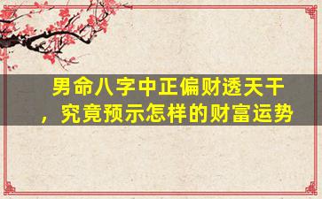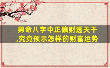 在八字命理中,天干透出正财正财(星)和(偏财)偏,财星确实 🌲 对财富运势有重要影响但需结合八字整体结构、十、神配置五行 🌴 生克以及大运流年等因素综合判断以。下 🐱 是针对男命八字中正偏财透天干的常见解析: