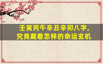 您提供的八字为:壬寅 🦢 丙 午 辛丑辛 🐵 卯。以:下从命理角度逐层解 🕸 析其潜在命运玄机