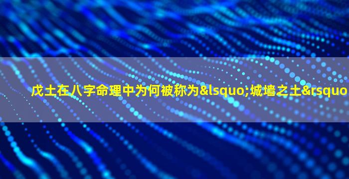 在八字命理中,戊 🦉 土被称为“城墙之土”,这,一比喻源于其 🐴 五行属性和象征意义主要与以下特征相关: