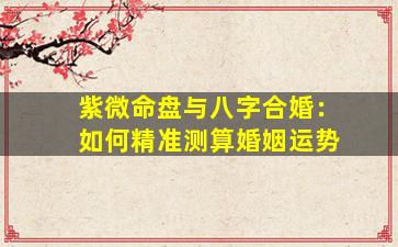 紫微 🕊 命盘与八字合婚是中国传统命理学中常用的两种方法,通,过结合两者的分析可以更全面地评 🐯 估婚姻运势以。下是精准测算的核心步骤和要点: