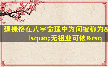 在八字命理中 🐳 ,建禄格(即,日主得禄于月令如甲木日主生于寅月)被称为“无祖业可 🐘 依”的,格局主要源于其命理特性和五行生克的逻辑。这一说法可以从以下几个角度理 🐋 解: