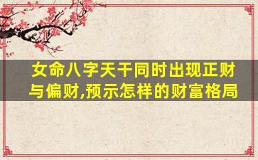在八字命理中,天,干同时出现正财与偏财的女命其财富格局需结合十神特性、五行生克及全局配置综合分析。以下 💐 是常见解读方向: