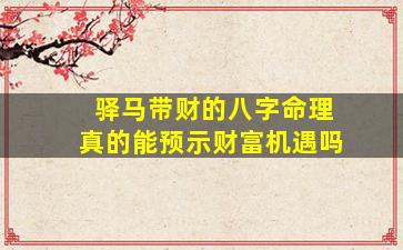 在中国传统命理学中,"驿"马,带财是一种特定的八字命理组合 🌼 常被认为与财富机遇、动态求财相关。其,是否真 🌻 的能 🐎 准确预示财富需结合命理学的逻辑框架和现实视角理性看待: