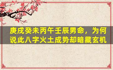 “火土成势”指八字 🐦 中火土力量主导,但“暗”藏玄机在于: