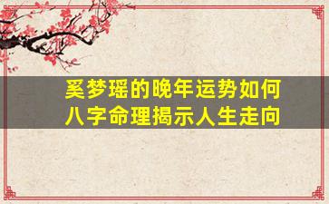 命理上,奚,梦瑶晚年运势需以准确 🌼 时辰定论但结合现有信息: