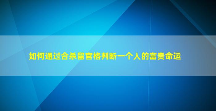 在八字命理中,“合杀留官格”是一种特殊格局,主要涉及七杀(偏官)与正官的相互作用,以及通过天干地支的合化来优化命局结构。其核心逻辑是通过“合去”七杀,保留正官,使官星清纯,从而提升贵气与事业成就。以下是具体分析方法和判断要点: