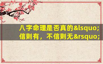 关于“八字命理是否 🍀 真的‘信则有,不信则无’”这,一问题可以从以下几个角度进 🐋 行探讨: