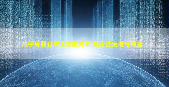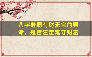 在八字命理中,"身 🐺 "弱,有,财无官的男 🐠 命是否难 🍁 以守财需结合命局整体分析而非单一论断以。下是关键要点: