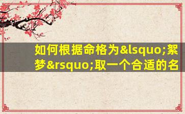 根据传统命理学和姓名学的原则,为命格“絮梦”设计名字需兼顾五行平衡字、义内涵与音韵美 🌵 感。以下是 🐟 为您精心设计的命名方案及解析: