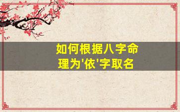 根据八字命理为“依字”取名,需结合五行 🐦 八字、喜、忌 🕷 字形字义等因素综合分 🐧 析。以下是具体步骤和注意事项: