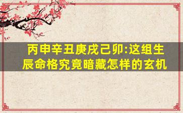 这组生辰八字“丙申 辛 丑 庚戌己卯”属于传统命理学中的 🐅 四柱排盘,每一柱分别代表 🐶 年、月、日、时。以下从命学角度解析其潜在玄机: