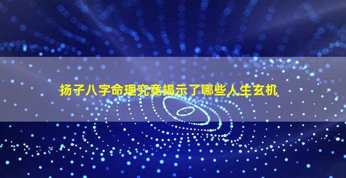 扬子八字命理,作,为中国传统文化 🍁 中命理学的一个分支通过分析个人出生时的年、月、日时、四柱(共八个字)来推测命运轨迹。其(核)心。在于阴阳五行金木水火土的生克制化与时空能量的互动以下是八字命理可能揭示的部分人生玄机及其逻辑框架: