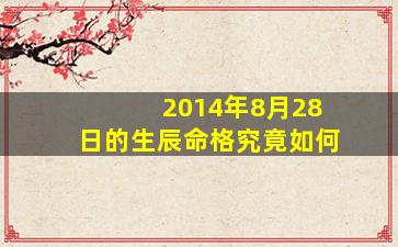 根据命理学(以传统八字推算为例),2014年8月28日(的)生辰命格需结合具体 🐘 出生时间和地点时区推算以。下为 默认按东八区、子时的(23:00 1:00) 排,盘分析供参考: