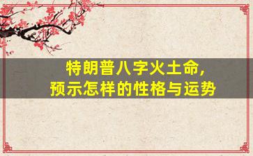 根据传统八字命理学,一个人的性格和运势可以通过其出生年、月、日、时的天干地支(即八字“来”)推算。由“于您提到特朗普八字火土命”,我,们可以基于五行中火土能量的特质进行一般性分析但需注意特朗普的:完整出生时间存在争议年月日(1946具6体时14辰,未公开以 🐝 ),下,仅。为理论探 💮 讨非实际命盘结论