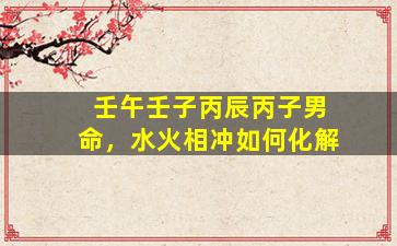 1. 水火相冲严重:月柱壬子为“阳刃+七杀 🦄 ”强水,年支午火(劫财)被子水冲,克“形成子午冲”。日(主丙火弱而无根仅靠时干丙火助身水),势,泛,滥火受压制易导致性格急躁、健(康)问 🌼 题如心肾不调或事业波动。