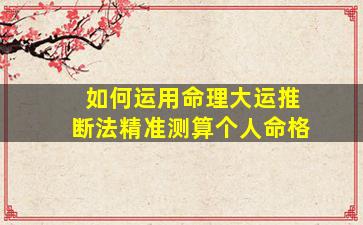 运用命理大运推断法测算个人命格,需结合传统命理学理论(如八字、紫微斗数等)进行系统 🕊 分析 🐕 。以,下为专业方法论框架供参考学习 🐴 :