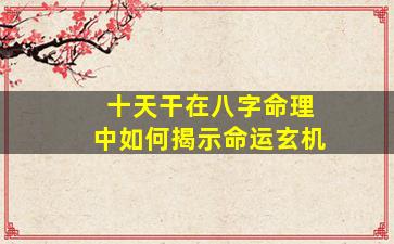 十天干(甲、乙、丙、丁、戊、己、庚、辛、壬、癸)在 🐵 八字命理中作为核心要素之一,与、地、支,五,行、阴、阳等结合共同构成一个人的命局框架揭示性格 🐎 运势吉凶等命 🌴 运信息。以下是其关键作用及玄机解析: