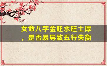 在八字命 🦋 理中,五行平衡是判断命运吉凶的重要因素之一。女命八字若出现金旺、水旺、土,厚 🦉 ,的。情 🦟 况确实可能存在五行失衡的潜在风险但需结合具体八字结构和十神关系综合分析以下是具体的解读方向: