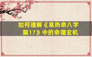 理 🐝 解《寒热命八字篇17》的 🦅 关键在 💮 于: