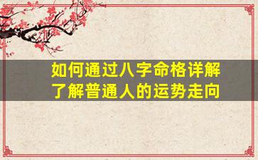 通过八 🐘 字命格(四柱八字)分析 🐛 普通人的运势走向,是中国传统命理学的核心方法之一八字。以出生年、月、日、时(的 🍁 )天,干、地,支。共八个字为基础结合五行生克十神关系等推断个人命运趋势以下是系统性的解读步骤和关键点: