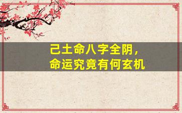 在八字命理学中,己,土作为阴土象征包容、承,载与滋养而“全阴八字”(即天干地支 🐯 皆属 🕊 阴)则、赋予命局更为内敛深沉的 🕷 特性。以下从多个维度解析其玄机: