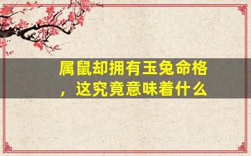 在中国传统命理学中,“属鼠却 🍁 拥有玉兔命格”是,一 🌵 种看似矛盾的命理组合需要从生肖属(相)和命格(八字、五)行等两个维度来理解。以下是具体的解释: