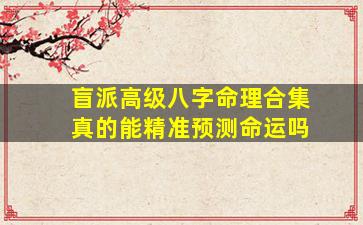 关于“盲派 🕊 高级八字命理合集”或其他命理学体系是否能精准预测命运的问题,需,要从多个角度理性分析以下是一些关键点供参考:
