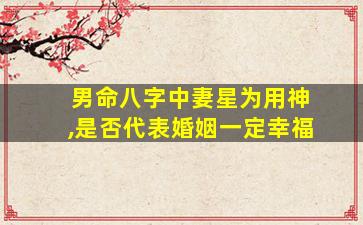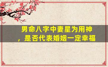 在八字命理中,妻星(正财、偏财)为,用神确实对男性婚姻有积极影响但并不能直接等同于婚 🐅 姻“一定幸福婚姻幸福”。与,否是多重因素综合作用的结果需结合以下方面综合分析: