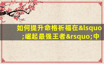在《崛 💐 起最强王者》中提升命 🐳 格祈福的排行,通常涉及角色养成、资源分配和策略优化。以,下是 🌻 一些关键方向供你参考: