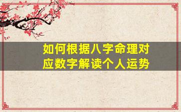 根据八字命理对应 🐈 数字解读个人运势,是一种结合传统命理学与数字象征意义的分析方法。以下是 🌿 系统的步骤和逻辑: