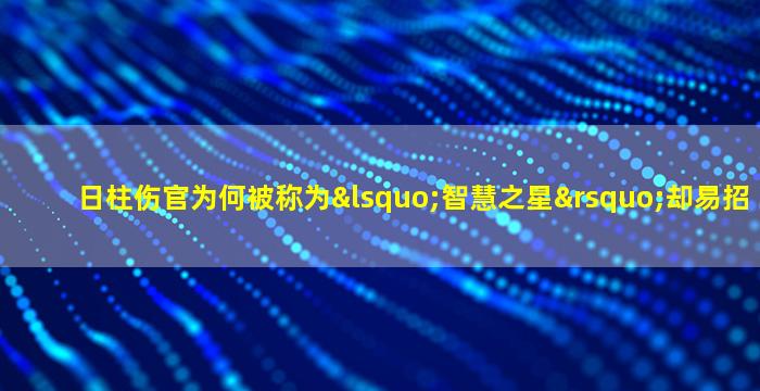 在八字 🦉 命理中,“日柱伤官”被“称”为,智慧之星 🌴 却又易招是非这一现象可从伤官的五行特性和命理逻辑来理解: