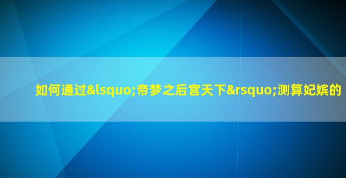 在游戏《帝梦之后宫天下》中,测算妃嫔的命格通常涉及游戏内的机制或隐藏属性。虽,然,具体 🍀 方法可能因版本更新或作者设定有所不同但 🕸 以下是一般常见的思 🦆 路和步骤供你参考: