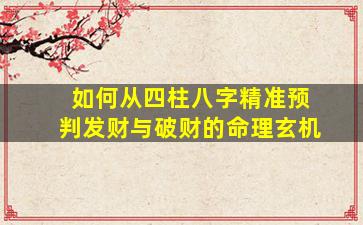 从四柱八字预判财运(发财与破财)的玄机,需结合命局结构、五、行生克十神组合及大运流年 🦊 的动态作用。以下是系统性的分析方法: