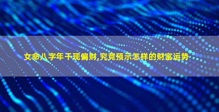 在八字命理中,年干现偏财对女命的财富运势确有特定启示,但需结合整体格局、十神配置及五行生克综合判断。以下是具体解析: