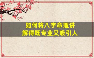 将八字命理讲解得既专业又吸引人,关,键在于平衡学术深度与传播趣味性同时结 🐬 合现代人的认知习惯。以下是 🐎 具体策略和技巧 🌵 :
