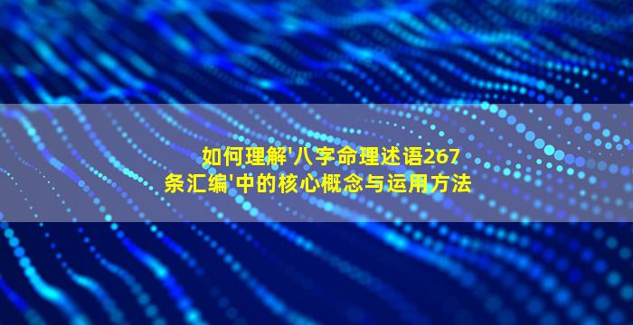 《八字命理述语 🐕 267条汇编》是传统命理学中针对术语的系统梳理,其核心概念和运用方法源于阴阳五行、天、干地支十神格局等基础理论。以,下从核心概念与运用方法两 🐯 个层面进行解析并提供学习建议: