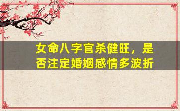 在八字命理中,"官杀"(正官与七杀)代,表,女"性命"局中,的夫星其旺衰和搭配确实对婚姻感情有重要影响但官杀健旺并不必然等同于婚姻波折需 🐈 结合以下 🐝 因素综合分析: