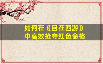 在《自在西 🦁 游》中 🌷 ,红,色命格作为顶级属性加 🐛 成道具获取和抢夺策略需要结合游戏机制和资源规划。以下是高效抢夺红色命格的详细指南:
