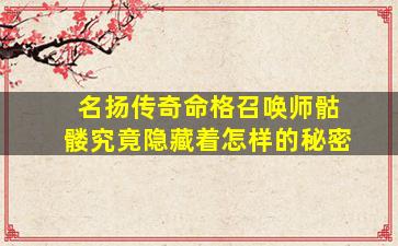 关于“名扬传奇命格召唤师骷髅”的秘密,目,前,没有明确的官方或广泛认可的设定但可以结 🐛 合游戏常见套路和玩家推测为你整理以下可能的秘密方向: