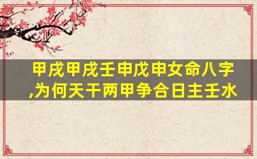 在八字命理中,"争"合是指天干中两个相同的五行同时合一个日主或其他天干。针对您提供 🐅 的女命八字:甲戌甲戌 壬 申 戊,申,其中天干两:甲木争合日主壬水的现象可以从以下角度分析