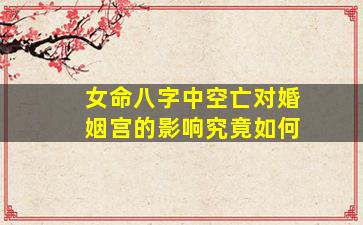 在八字命理中,空亡(又称“旬空”)是 🦄 ,一“个”重“要的概念指天干地支组合中某些地支因旬空而失效或能 🐞 量减弱”。对(于)女命八字中,空,亡对婚姻宫日支的影响需结合具体命局综合分析以下为常见情况及解读 💐 思路: