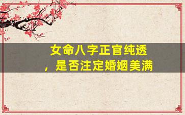 在八字命理中,"正"官,纯"透"确,实常被视为女性婚姻的吉兆但能否注定婚姻美满需结合全局分析 🌷 不 🕸 可一概而论。以下是关键 🌿 要点: