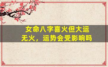 在 🕊 八字命理中,女命,若,喜火但大运无火确实可能对运势产 🐒 生影响但具体需结合原局大运、和流年的互动来综合判断。以下是详细分析: