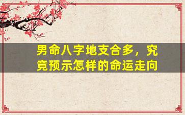 在八字命理中,地支相合(如六合、三合、半合等)多的情况,确实会对男性命运产生复杂的影响,需结合具体合化情况、五行喜忌及全局配置综合分析。以下是常见的几种解读方向: