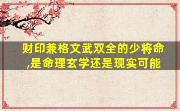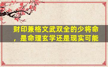 关于“财印兼格文武双全的少将命”这一命理说法,可以从命理学和现实逻辑两个角度进行解析: