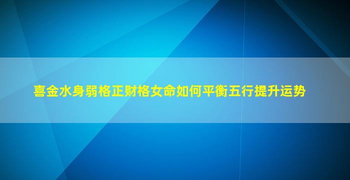 对于“喜金水、身弱格、正财格”的女命,五行平衡和运势提升需围绕补益金水、调和身弱、合理利用正财展开。以下为具体建议: