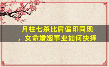 在八字命理中,月柱七杀、比肩、偏印同现的女命,需结合十神特性和五行生克来分析婚姻与事业的抉择。以下为具体解析: