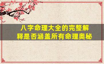 关于“八字命理大全的完整解释是否涵盖所有命理奥秘”这一问题,可以从命理学的理论体系、实践应用以及哲学层面进行辩证分析: