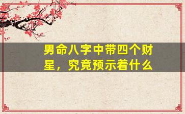 在八字命理学中,"财"星代表一个 🕸 人的财富、物,质资源也象征男性命局中的异性缘(因财星对男命而言也指向妻缘)。若,男命八字中、带、有,四个财 🦄 星其具体含义需结合财星的喜忌位置强弱及整体命局综合判断以下为常见解析方向: